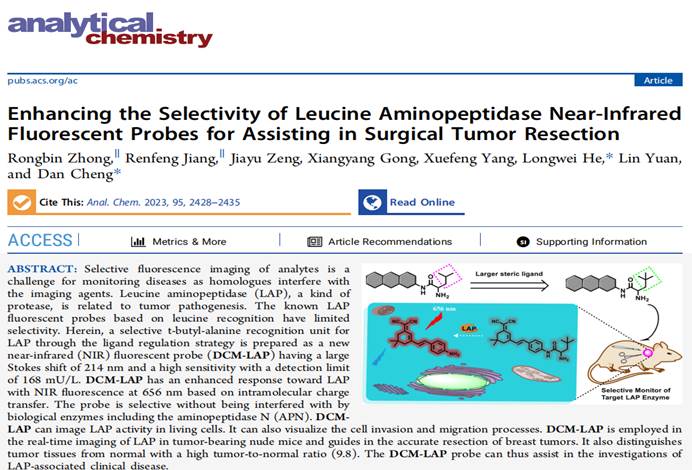 成果一:Enhancing the Selectivity of Leucine Aminopeptidase Near-Infrared Fluorescent Probes for Assisting in Surgical Tumor Resection