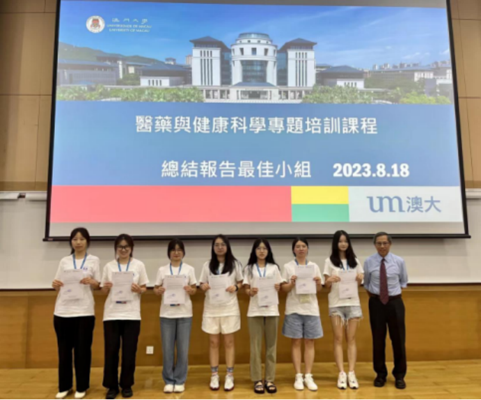 在最后的成果总结中,由公司员工组成的两个队均表现优异,体现了良好的科学素养与合作精神。两组员工分工合作,基于教授们讲授的专题讲座内容,分别进行了题为"The Tumor Microenvironment"和"The prospect of selenium in Alzheimer’s disease"的主题汇报,这展现了公司员工的夯实的科研基础。在精彩的PPT展示以及绘声绘色的演绎中尽展南华员工的风采,得到了本校及澳门大学教授的肯定与赞扬。其中一组被评为最佳汇报小组并成为第一组获得澳门大学持续进修中心Matthew签发的推荐信!愿公司员工能在接下来的学习之旅再创佳绩。