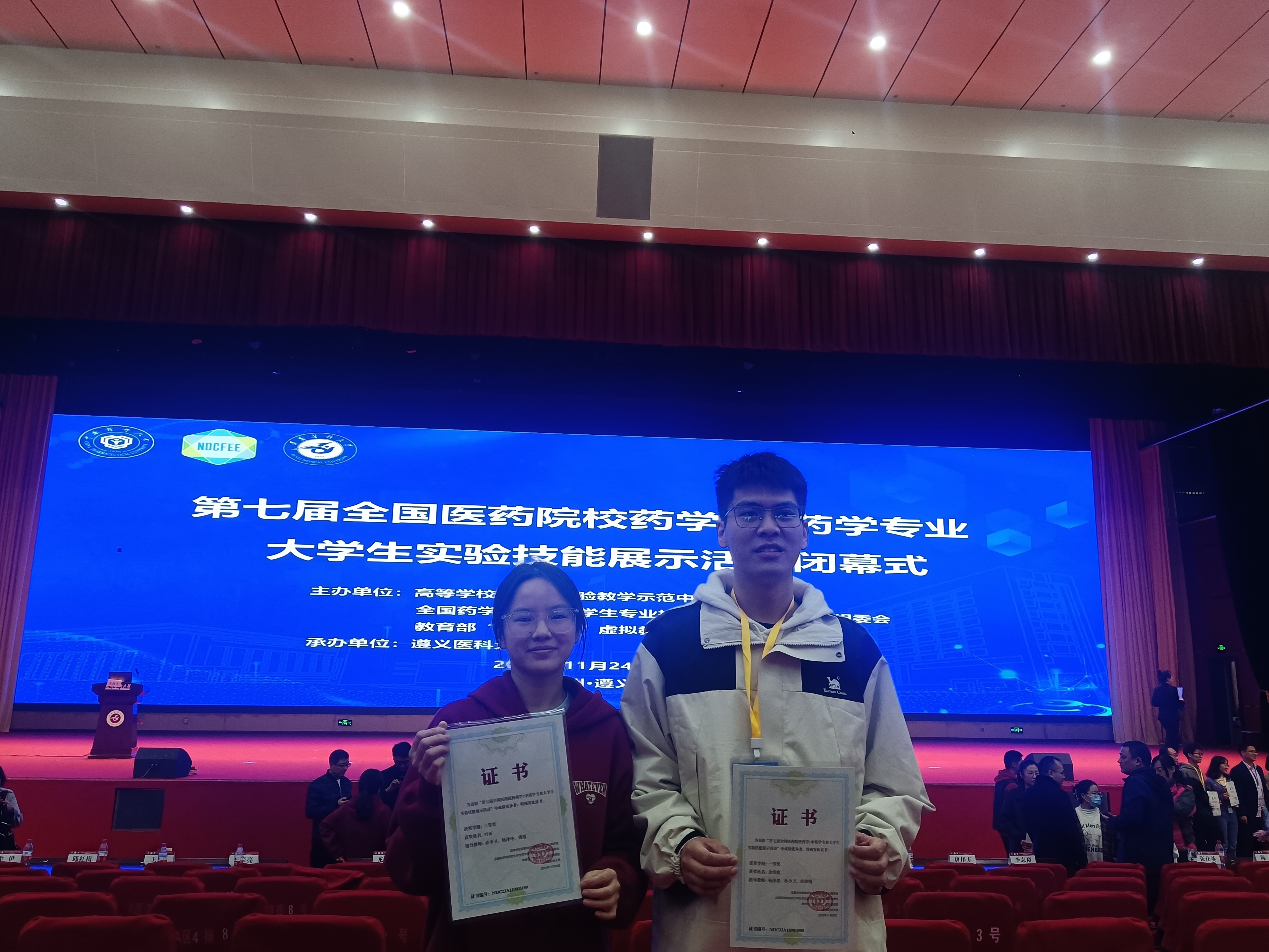 2023年11月26日,“第七届全国医药院校药学/中药学专业老员工实验技能展示活动”决赛在遵义医科大学落下帷幕。经过长达六小时的笔试和实验操作两轮展示环节比拼,20级药学专业的余治鑫、21级药学专业的叶雨两位同学发挥出色,分别获得一等奖和三等奖。这也是三亿体育官网在此类比赛中国家一等奖的历史性突破。