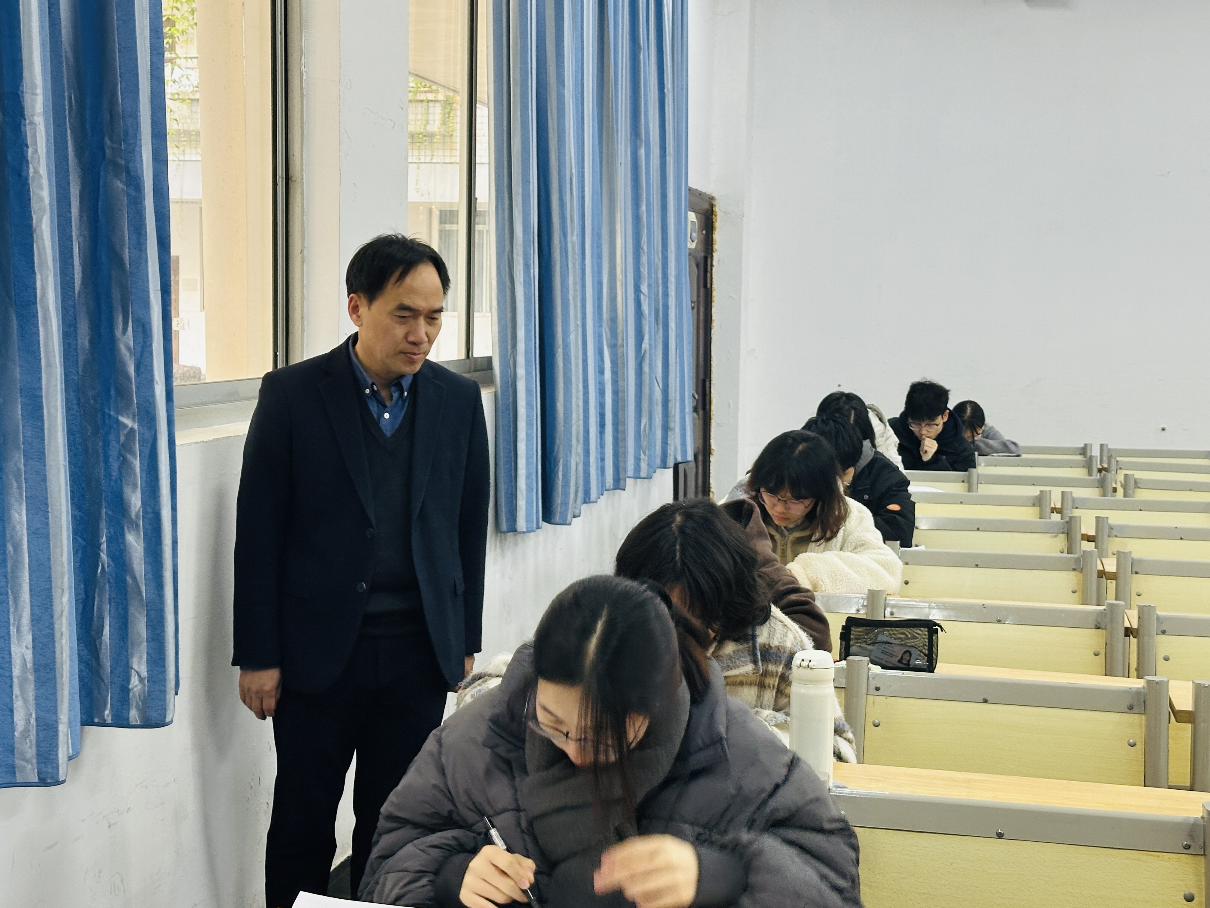首先,雷小勇一行来到药学专业《生物化学D》期末考试考场进行巡视,对每个考场的考场秩序、考场设施环境、员工考风考绩和监考教师履职等情况进行全面细致地巡查与指导。他强调期末考试是对员工一学期以来学习效果的检验,要营造公平公正的考试环境,严肃考风考纪,监考老师发现问题要及时处理,以确保期末考试工作顺利进行。从巡查整体情况来看,考试情况良好,监考教师认真负责,员工考试态度端正、遵守纪律,考场秩序井然。