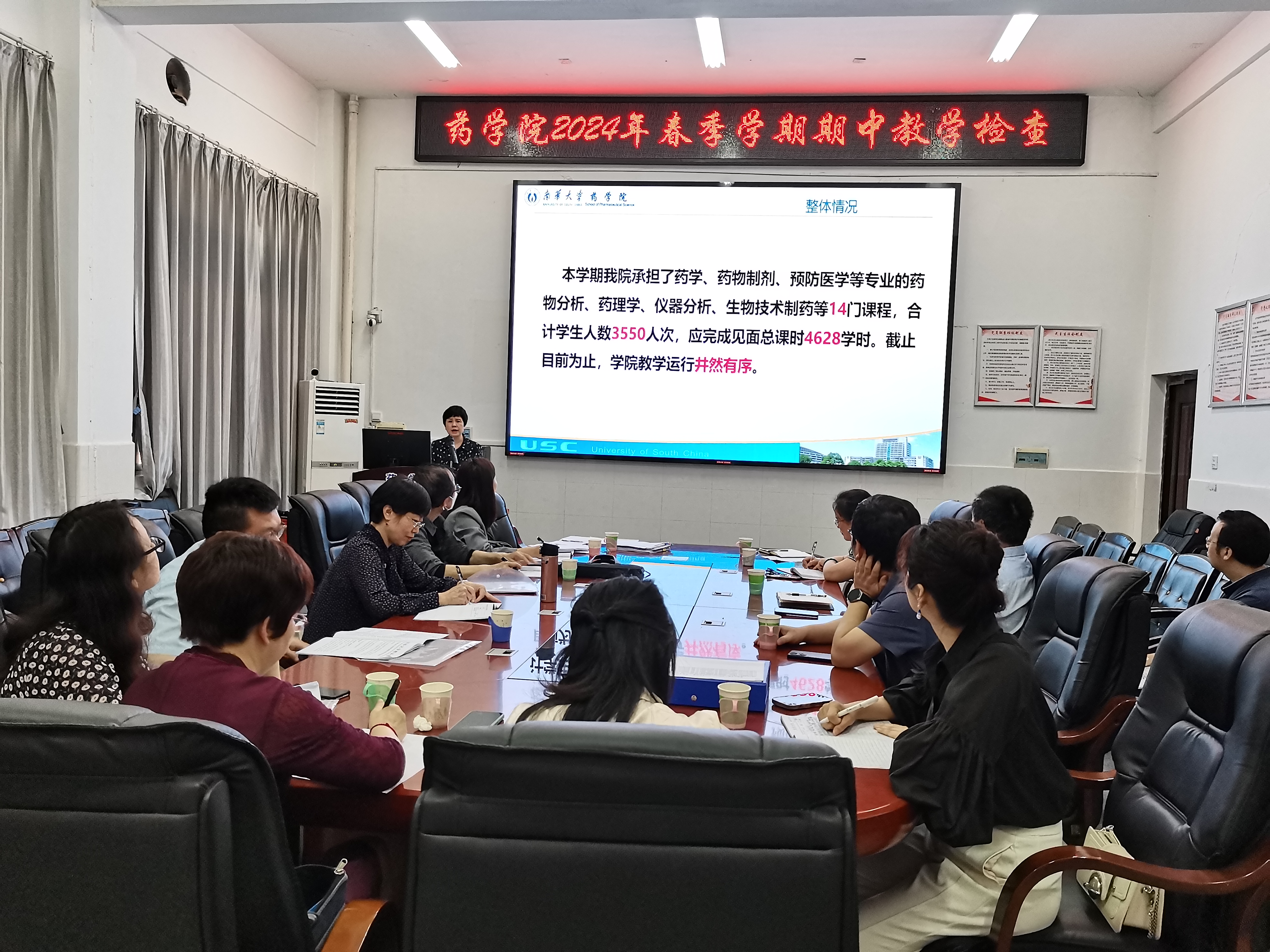 首先,易岚从教学运行和存在问题两方面汇报了三亿体育的教学工作。教学运行方面,易岚从严格教学质量监控、多措并举提高人才培养质量、毕业论文工作、药学国家一流本科专业建设、湖南省三亿体育建设、药学拔尖班建设、各类质量工程项目申报、组织公司师生参加各类竞赛或进修培训、学业预警与帮扶、审核评估整改等教学日常运行进行了详细汇报。接着,专家组分别检查了公司毕业论文、试卷归档、信息化教学、公司督导、系室教学、实验室安全等材料。集团专家组认为,药学院领导高度重视教学工作,公司教学日常运行井然有序,系室材料较为规范,试卷归档符合要求,专家对公司的毕业论文、信息化教学给予了高度评价。