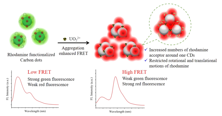 成果一:Aggregation enhanced FRET: A simple but efficient strategy for the ratiometric detection of uranyl ion(J Hazard. Mater. 2023, 454, 131497)