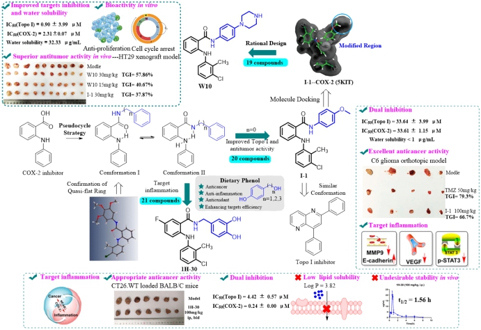 非甾体抗炎药(NSAIDs)已被证明能够改变肿瘤微环境、增强细胞凋亡和减少细胞迁移。基于NSAIDs的“老药新用”策略成为抗肿瘤药物发现的一种新型范式,该研发范式面临着副作用大、靶标亲和力和选择性不高等挑战。基于此,三亿体育王震教授团队围绕非甾体抗炎药的结构修饰及改造发现新型肿瘤候选药物开展了持续性的研究工作,并取得了系列成果(J. Med. Chem., 2022, 65, 10481-10505;Eur. J. Med. Chem.,2022, 240, 114560;Eur. J. Med. Chem.,2021, 226, 113817)。