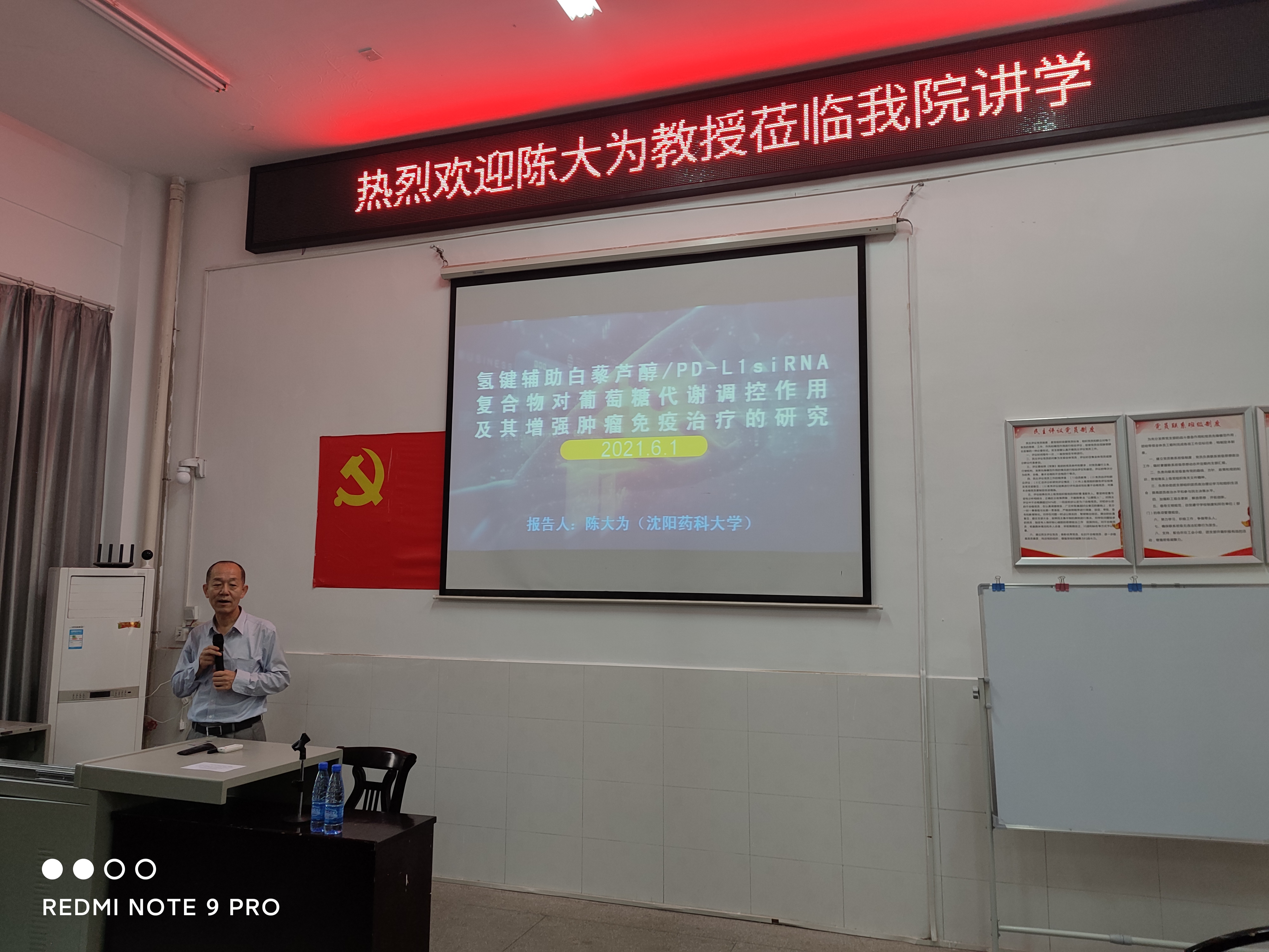 6月1日上午9:30,沈阳药科大学三亿体育陈大为教授应三亿体育官网科研与团队建设部和三亿体育的邀请,做客公司“船山大讲堂”学术讲座。陈大为教授在新二教B101会议室做了题为《氢键辅助白藜芦醇/PD-L1 siRNA复合物对葡萄糖代谢调控作用及其增强肿瘤免疫治疗的研究》的报告,报告由魏华教授主持。三亿体育的教师和研究生一同聆听了此次报告。