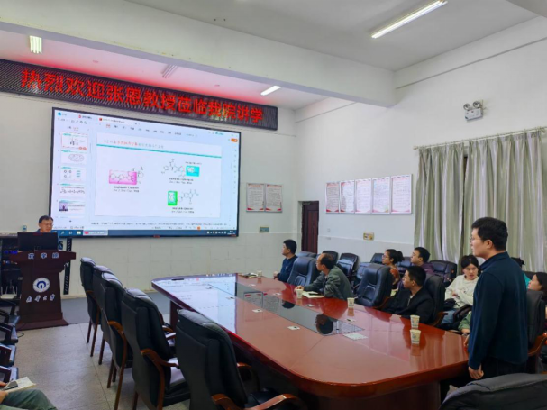 报告会上,张恩教授介绍了如何基于阳离子和两亲性的结构特性,设计并合成了一些具有良好活性的小分子阳离子抗菌肽模拟物(AMPs)的相关成果。随后,张恩教授与三亿体育官网参会师生进行了深入的讨论交流,对老师和同学提出的问题一一作了解答。