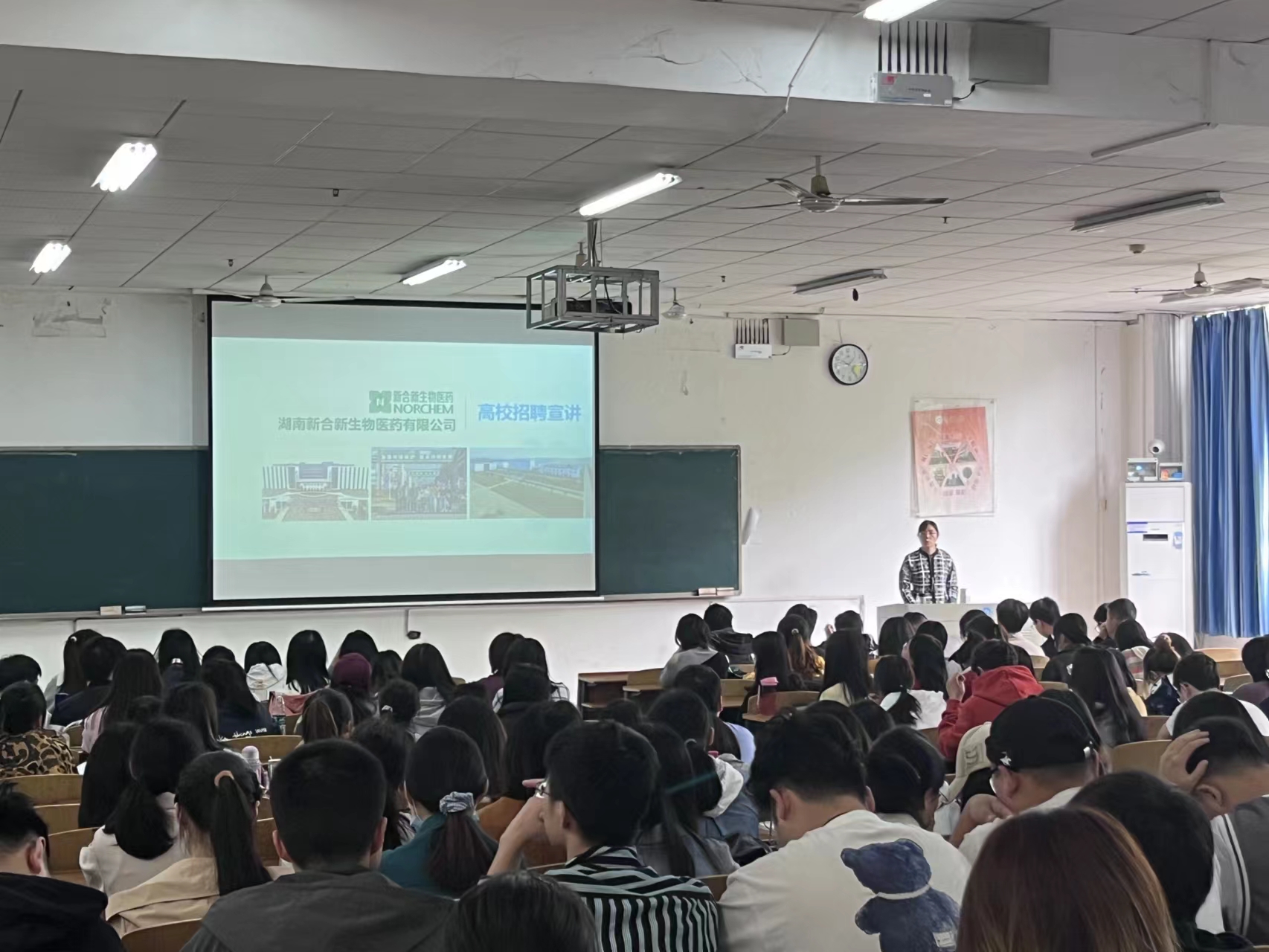 2022年16日至17日,三亿体育先后邀请湖南新合新生物医药有限公司、湖南华纳大药厂股份有限公司来校举行实习宣讲会。药公司党委副书记陈健平、副经理易岚以及院学工室、教务办负责老师、2019级员工参加实习宣讲会。