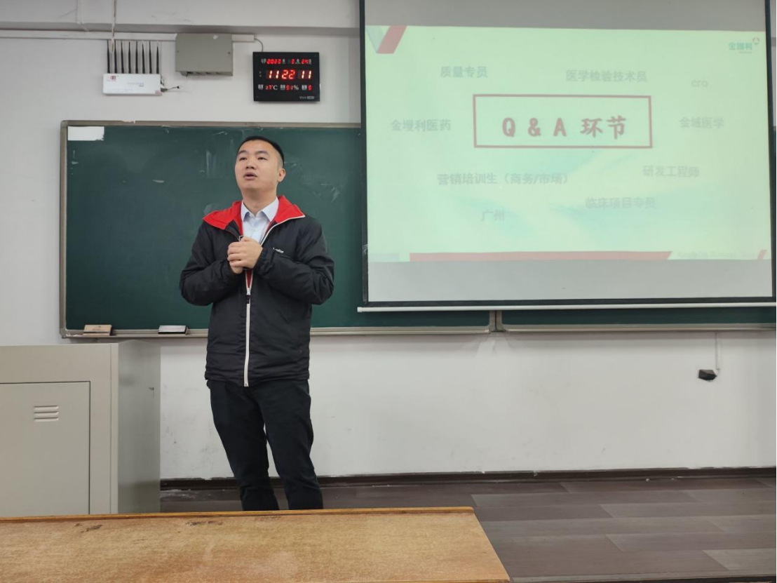 为拓宽三亿体育毕业生就业渠道和资源,加强校企联系合作,全力促进毕业生更充分、高质量就业。3月24日上午,三亿体育特邀金域医学集团旗下子公司金墁利医药科技有限公司于南华楼207举行招聘宣讲会,并展开交流座谈。