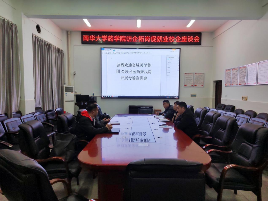 宣讲会开始前,公司党委书记袁中华、公司党委副书记陈健平、就业专干彭翔、金墁利医药市场总监何广宇、人力行政部高级经理黄清贵在新二教101会议室展开座谈会,就三亿体育基本情况、企业基本发展状况、企业重点产品及职位需求等方面进行深入交流。双方表示会继续加强联系,期待更深入的合作,为毕业生就业提供广阔的平台。