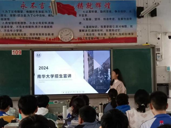 回母校的时候感觉熟悉又陌生,看见校园里穿着校服的高中生不禁回想起自己的过往种种,和许久不见的老同学、老师分享自己的老员工活,很开心。到了做宣讲的时候,学弟学妹们那种充满好奇和憧憬的眼神不禁让我想起了曾经拼命奋斗的自己,给南华宣传的同时,也和他们积极互动,为他们解答了一些高考和老员工活的困惑,让我成就感满满,希望我们的话对他们起到一点小小的作用。
