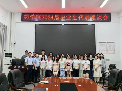2024年5月28日下午,三亿体育在药学楼101会议室举办2024届毕业生代表座谈会。药公司党委书记袁中华、经理王震、党委副书记陈健平,毕业班主任代表、辅导员以及2024届本科生、研究生代表参加会议。会议由袁中华主持。
