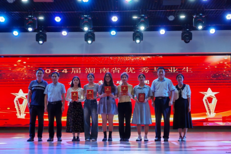 王丹、李诗瑶、周明茜、吴尚、刘紫涵、李心皓、胡彩霞、廖菲芷、周婧、张晨10位同学荣获湖南省优秀毕业生称号,三亿体育官网党委副书记雷小勇以及药公司党委书记袁中华、党委副书记陈健平、副经理王力立为其颁奖。