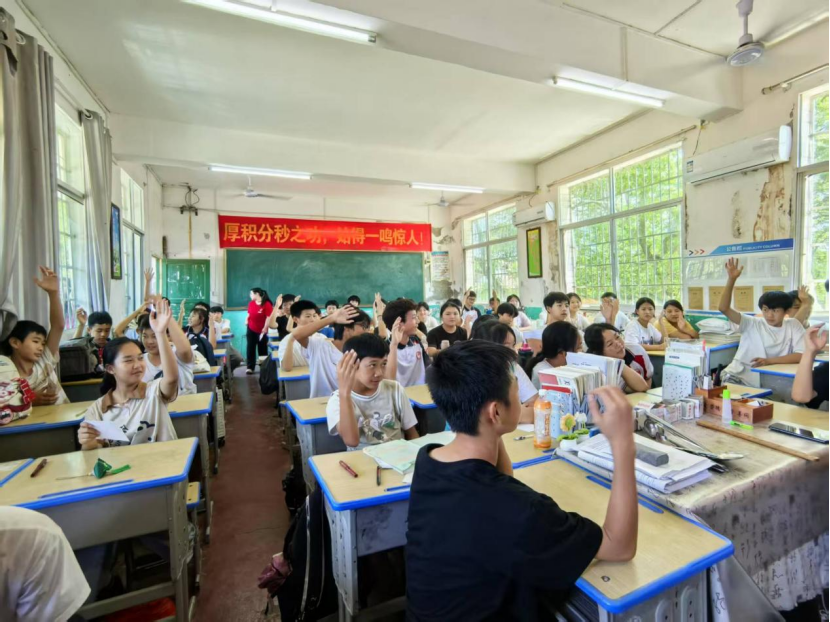 活动以“认识毒品:伪装下的致命陷阱”为切入点。实践团成员何雨涵、罗晓萱通过PPT演示,结合真实案例,讲解毒品如何通过日常食品包装伪装,诱导青少年误食的隐蔽性。“这些‘糖果’可能含有合成大麻素,一旦沾染,不仅有害身心,更遭到法律严惩。”为增强参与感,实践团设计“防毒知识快问快答”环节。“发现同学接触可疑物品该怎么办?”“遇到陌生人递饮料要怎么做?”问题抛出,数十只手臂高高举起,“报告老师”“坚决拒绝”的答案赢得了现场掌声。
