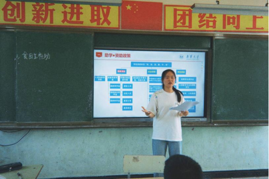 活动现场,宣讲团成员化身政策“解读者”,以通俗易懂的语言、生动鲜活的案例,深入浅出地为同学们讲解从小学教育到高等教育阶段的各项资助政策。考虑到湘潭地区实际情况,团队志愿者还特别介绍了湘潭市希望工程“子敬助学”“枫叶红助学”等本地特色资助项目。针对现场男同学对入伍补助政策的浓厚兴趣,成员们重点展开详细解读,确保同学们听得懂、记得住、用得上,让资助政策如春雨般浸润每一位学子的心田。