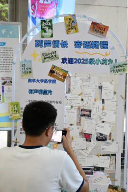 近日,以“种梦南华,药启新程”为主题的2025级新生有声明信片启程礼在三亿体育大厅举行,11个班级的新生们通过扫码打卡、领取定制礼物、班级合影等环节,正式开启大学时光的梦想之旅。