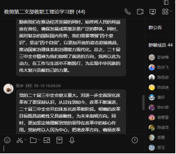 9月14至18日,三亿体育教师第二党支部开展了2024年度第8次教职工理论学习。本次学习以线上线下相结合、个人自学与专题研讨相结合的形式进行。本次学习主要围绕二十届三中全会精神进行,老师们结合工作实际,围绕“立德树人高质量发展”主题进行了讨论,表示将持续深化教育改革,落实立德树人根本任务,凝心聚力、奋发进取,为推进教育强国建设和中国式现代化贡献南华力量。