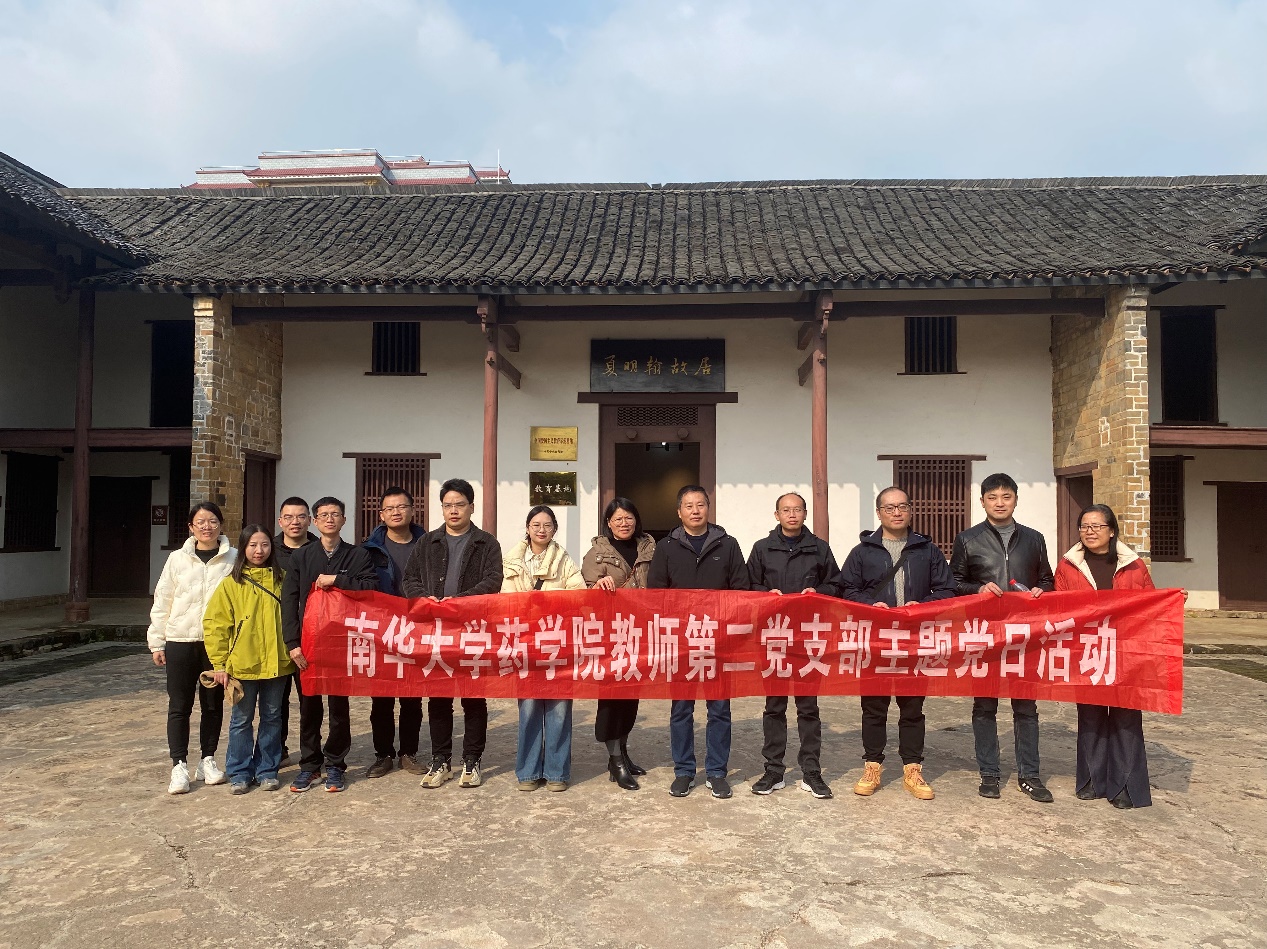 为深入开展学习贯彻习近平新时代中国特色社会主义思想,深入了解中国共产党的发展历史,深入感受湖湘文化魅力,弘扬爱国主义精神,学习革命先烈为国为民献身革命的坚定信仰和无私忘我的崇高精神,药公司党委于12月8日组织全院教师党员前往夏明翰故居、王船山故居参观学习。