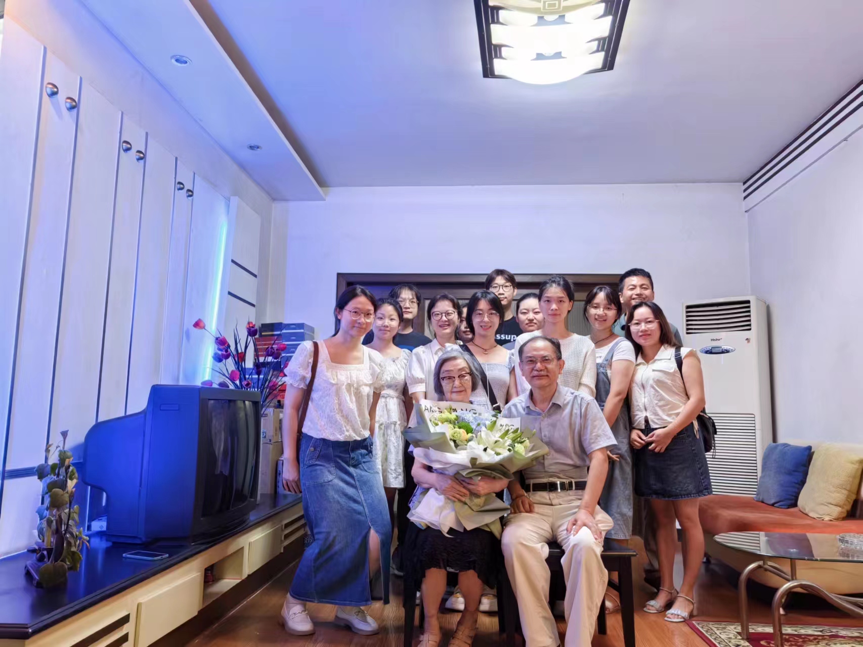 陈临溪教授也携课题组员工看望慰问余麟老师,对其近40年来在教学和科研工作中的辛勤付出表示感谢和敬意。