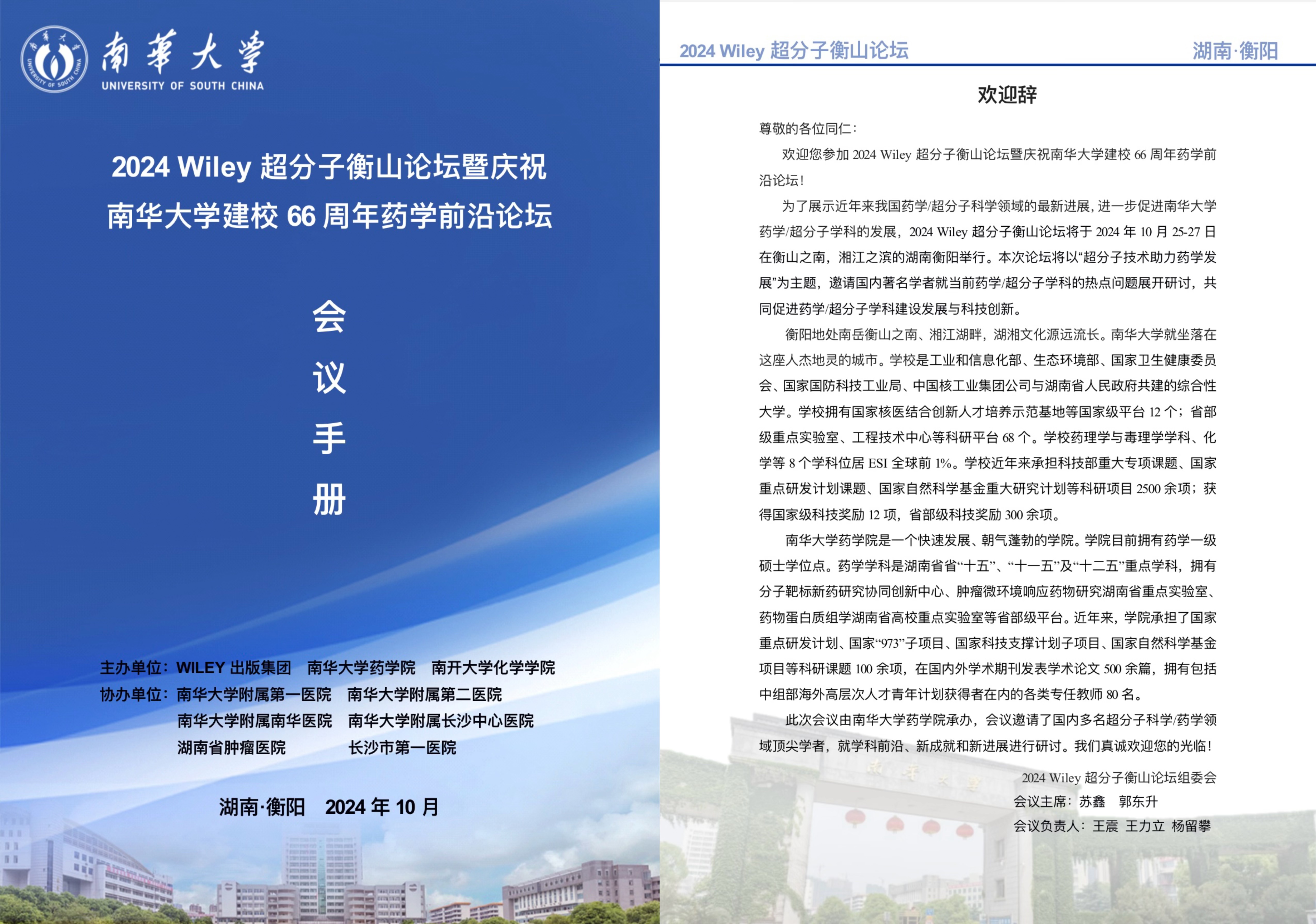 2024 Wiley超分子衡山论坛暨庆祝三亿体育官网建校66周年药学前沿论坛会议通知
