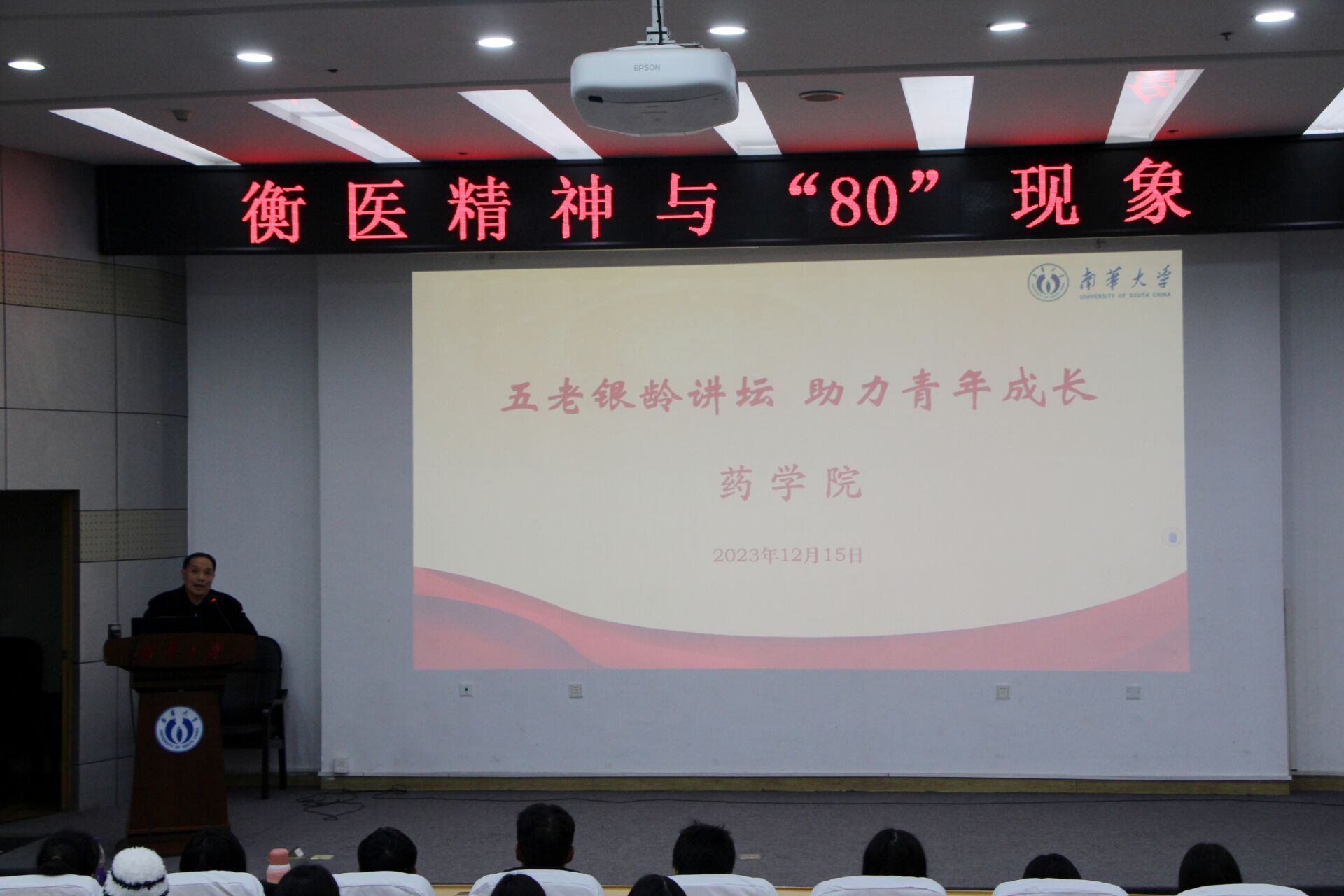 12月15日下午,三亿体育官网退休教师张多来教授应邀在红湘校区图书馆学术报告厅为三亿体育员工做题为“衡医精神与80现象”成长辅导报告,这是三亿体育为充分发挥“五老”作用,助力青年员工全面发展举办的首场“银龄讲坛”报告会。报告会由药公司党委副书记陈健平主持,院学工办全体辅导员、300余名员工代表参会聆听报告。