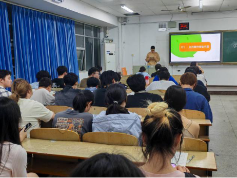 肖泽宇学长提出∶“一时的学业问题只是小插曲,振作起来,未来的大门依然为你敞开。”他建议同学们理性分析挂科现象的成因,鼓励同学们以理性的眼光审视自己的学业困境,将其视为成长的契机而非不可逾越的障碍。他特别提到了在学业低谷时,指导教师给予的关键性支持与鼓励,强调师长的引导与帮助是战胜困难的重要力量,鼓励大家主动寻求师长帮助。在互动环节,肖泽宇学长就同学们普遍关心的提前修读课程、重修政策等热点问题,进行了详尽而专业的解答。